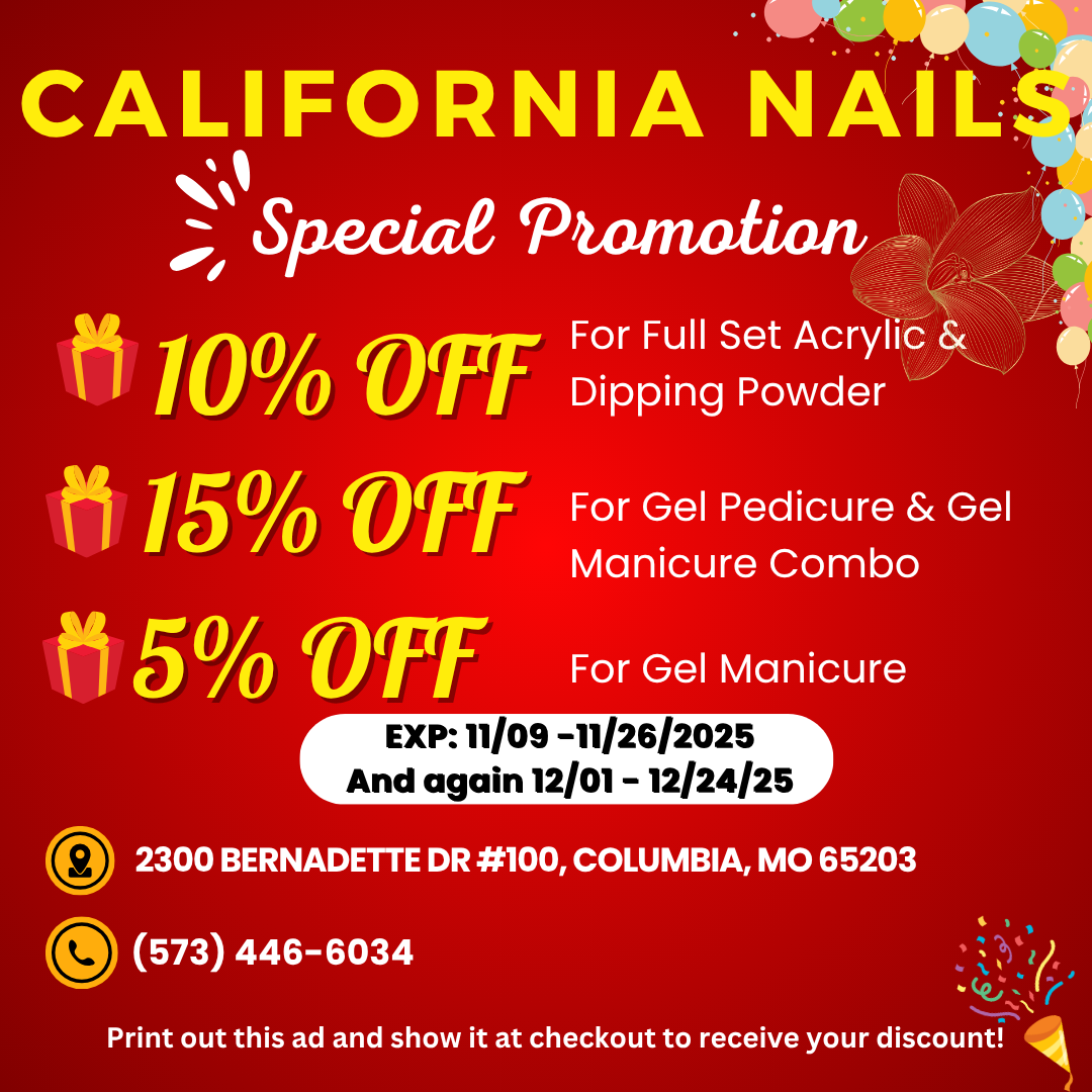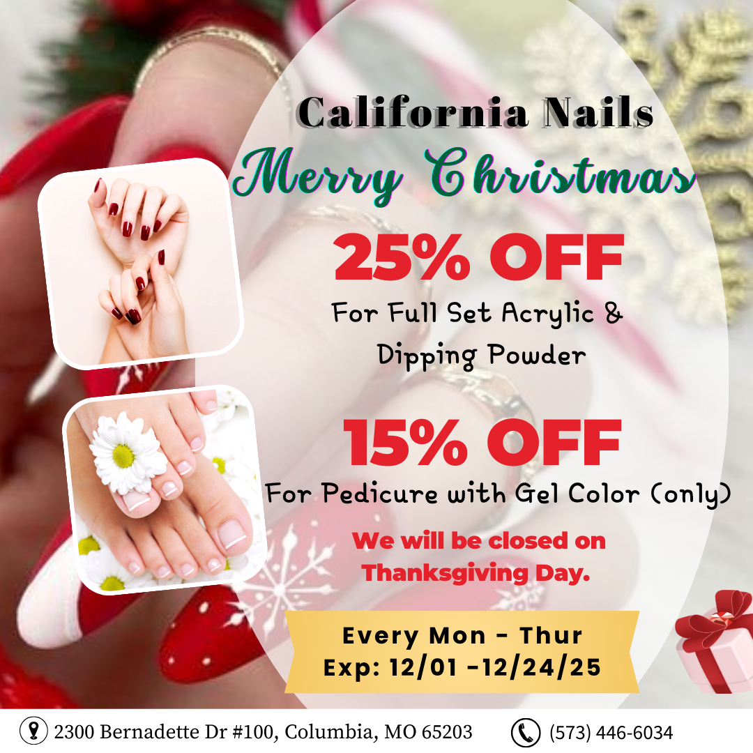 Are you looking for a reliable nail salon to perform nail and spa services? Look no further, California Nails LLC is the ideal location. Visit us at 2300 Bernadette Dr #100, Columbia, MO 65203, for beauty treatments and find yourself looking even more beautiful with a stylish look!