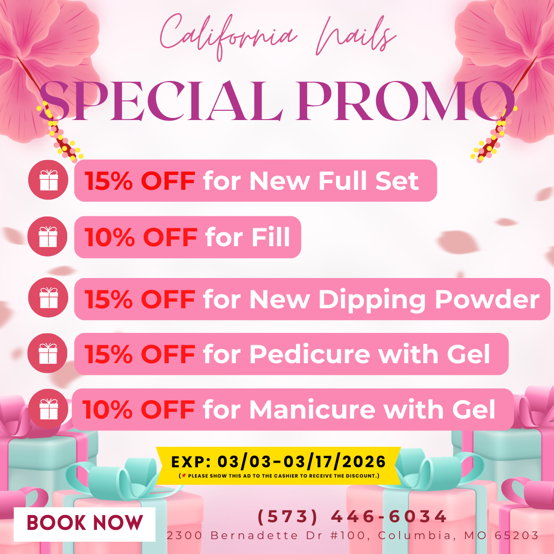 Are you looking for a reliable nail salon to perform nail and spa services? Look no further, California Nails LLC is the ideal location. Visit us at 2300 Bernadette Dr #100, Columbia, MO 65203, for beauty treatments and find yourself looking even more beautiful with a stylish look!